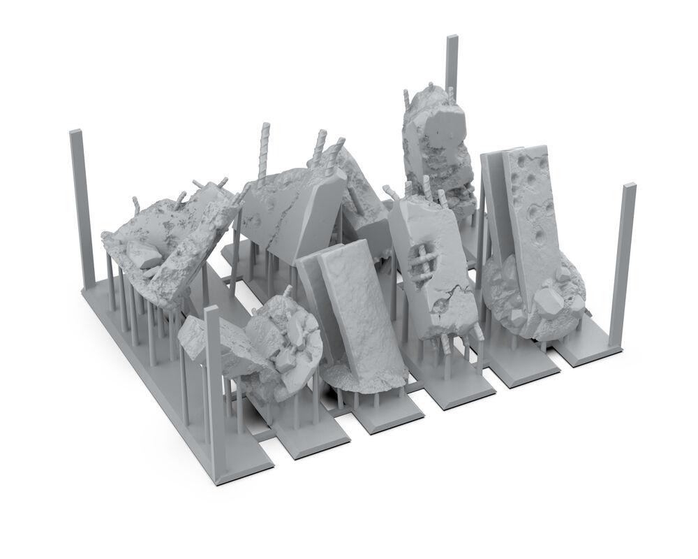 Nicht zusammengebauter und unbemalter Modellbausatz. Die zur Fertigstellung benötigten Farben sowie der Klebstoff für den Bausatz Concrete Ruins sind nicht im Lieferumfang enthalten.
