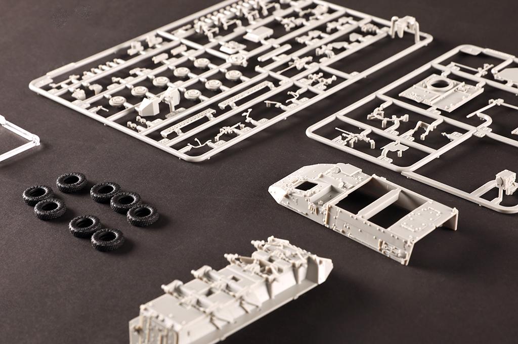 Nicht zusammengebauter und unbemalter Modellbausatz. Die zur Fertigstellung benötigten Farben sowie der Klebstoff für den Bausatz M1127 Stryker Reconnaissance Vehicle (RV) sind nicht im Lieferumfang enthalten.