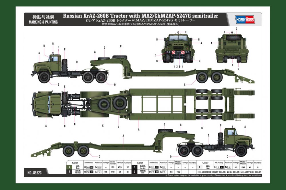Russian KrAZ-260B Tractor with CMAZ/ChMZAP-5247G semitrailer · HobbyBoss · Maßstab 1:35
