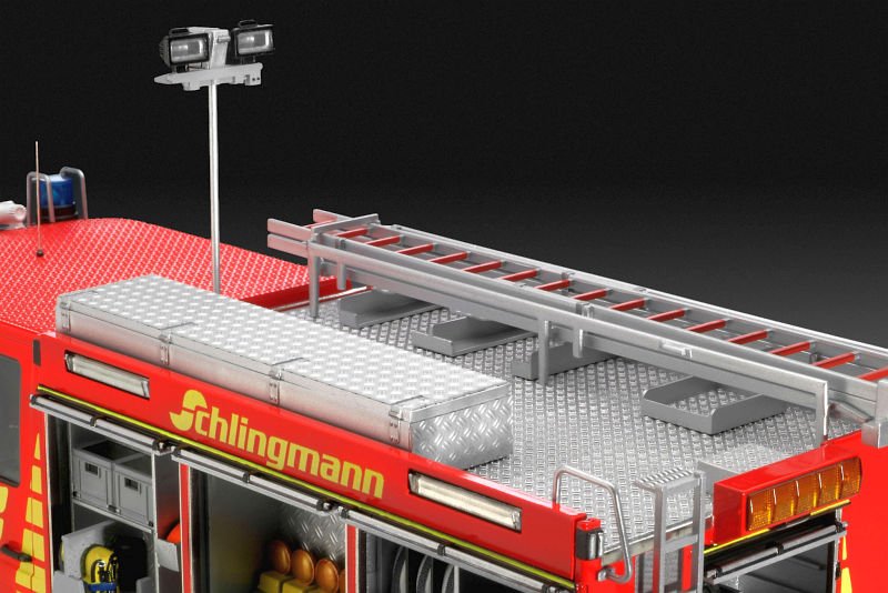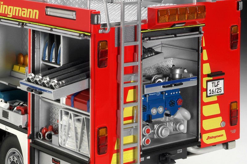 Nicht zusammengebauter und unbemalter Modellbausatz. Die zur Fertigstellung benötigten Farben sowie der Klebstoff für den Bausatz Schlingmann Feuerwehrfahrzeuge TLF 16/25 Mercedes Benz Atego 1529 AF sind nicht im Lieferumfang enthalten.